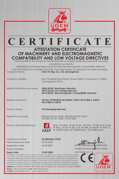 Standard:CE Certificate of Hot Stamping Machine